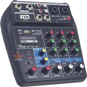 Características:Canais: 4 (3+1)Entradas XLR / P10Entrada Mic Phanton Power 48VSaída estéreo para gravaçãoEqualizador de 2 bandas para cada canal de entradaEfeito fx - Reverberador profissional (2 canais)Monitoração fone de ouvidoConexão MP3 / Pendrive UsbInterface para PcDisplay - mostra a operação e status de reproduçãoAlimentação via Usb Pc / Fonte 5v