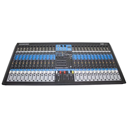 Para eventos que necessitam de mais microfones ou até mais instrumentos, você vai precisar de uma mesa a altura. A MP-24 é perfeita para isso, pois, possui 24 canais além de diversas outras configurações que vão te atender super bem.
