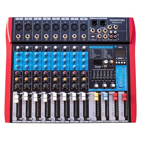 8 canais mono com entradas balanceadas e XLR de linha P-10
