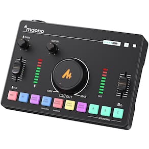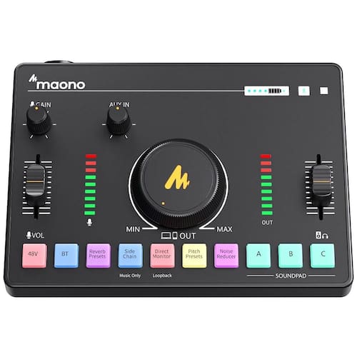 - Mesa de som Maono Caster C2 Neo com múltiplas funções e ajustes