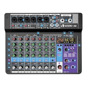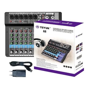 Mesa de som teyun a8 8 canais Descrição A mesa de som teyun a8 de 8 canais com conectividade bluetooth, usb e entradas xlr é uma solução completa e moderna para quem busca qualidade sonora, versatilidade e recursos avançados em gravações, transmissões ou apresentações. Ideal para músicos, produtores, podcasters e streamers, este mixer oferece uma combinação poderosa de placa de som digital com tecnologia analógica, além de uma ampla gama de conexões: são 6 entradas para microfones e 2 entradas de linha, suportando microfones condensadores com alimentação power de 48v e diversos dispositivos de áudio. Com equalização de 3 bandas em cada canal, 24 efeitos dsp, filtro passa-alta, loopback para gravações e leds de monitoramento em tempo real, essa mesa de som proporciona controle total sobre o som e performance. Seu chip arm de alta velocidade garante operação estável, som com baixa latência e ruído reduzido. Compacta, leve e portátil, pode ser alimentada via usb diretamente no pc ou com fonte externa, tornando-a ideal para estúdios móveis, gravações em home studio e transmissões em tempo real. Especificações técnicas - número de canais: 8 - entradas: 6 microfones xlr/trs + 2 linhas estéreo rca - saídas: estéreo principal, fones de ouvido 3.5mm, saída para celular - conectividade: bluetooth, usb 2.0, xlr, trs, rca, 3.5mm - resposta de frequência: 20hz - 20khz 1db - taxa de reprodução/gravação: 24 bits / 48khz - distorção thd : 0,02% +10dbu - ruído residual: -85dbu - crossover de canal: -83db 1khz - equalizador por canal: agudos 10khz , médios 2.5khz , graves 100hz , variação 15db - filtro passa-alta hpf : 80hz, 12db/oitava - alimentação power: 48v - função loopback para gravação/lives - monitoramento: leds de pico e nível principal estéreo - chip arm de alta velocidade com processamento de efeitos Dimensões e peso - comprimento: 27 cm - largura: 34 cm - altura: 8 cm - peso: 1,2 kg Itens inclusos - 1 mesa de som 8 canais com interface digital integrada - 1 cabo usb - 1 manual do usuário em português : 3 meses de pelo fabricante. Origem: china Imagens meramente ilustrativas, podendo haver variação de cor Homologação Anatel: 149822010251
