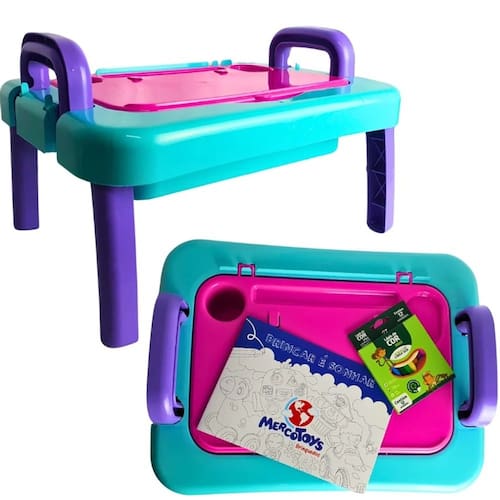 A Mesa de Desenho Infantil rosa é muito mais do que um simples móvel - é um convite para a criatividade e a diversão das crianças. Com seus pés dobráveis e design multiuso, esta mesa é um centro de atividades que se adapta às necessidades em constante mudança dos pequenos.Além de oferecer um espaço espaçoso para desenhar e criar, esta mesa vem acompanhada de um livro e uma caixa de lápis, inspirando a imaginação e estimulando o desenvolvimento artístico das crianças. Seu design inteligente inclui lugares dedicados para apoiar os alimentos, permitindo que as crianças explorem outras atividades enquanto desfrutam de uma refeição ou lanche.- Marca: MercoToys;- Dimensões: 55cm X 36cm;- Acompanha 12 cores de lápis e um caderno para colorir.
