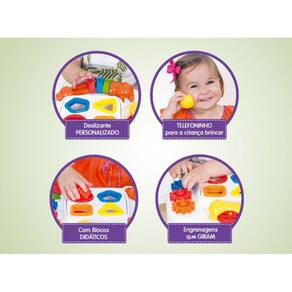As crianças vão adorar a Mesa Didática Play Time da Cotiplás. Com blocos didáticos, engrenagens que giram, telefoninho e deslizante personalizado, a meda ajuda na coordenação motora e auxilia na distinção de formas, cores e som.