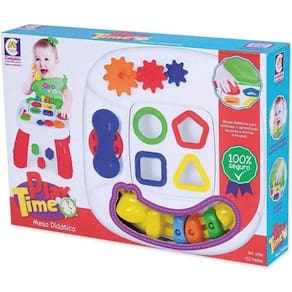 A Mesa Divertida Play Time Cotiplás, além de divertir e distrair o bebê, ajuda na coordenação motora da criança, na distinção de formas e cores. É um brinquedo 100% seguro. Ele vem com telefoninho com discador que faz barulhinho, blocos didáticos, possui deslizante personalizado e engrenagens que giram e outros.