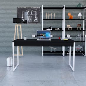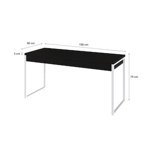 Mesa Diretor 150x60x75cm Com 2 Gavetas Kuadra Preto Ônix Estrutura Branca - Branco
