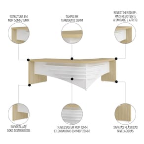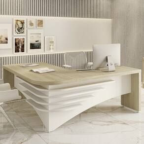 Procurando por uma mesa de escritório elegante e imponente? Conheça a Mesa Diretor em L Lado Esquerdo 200x180cm Corp A06 Carvalho/Branco, da Mpozenato.