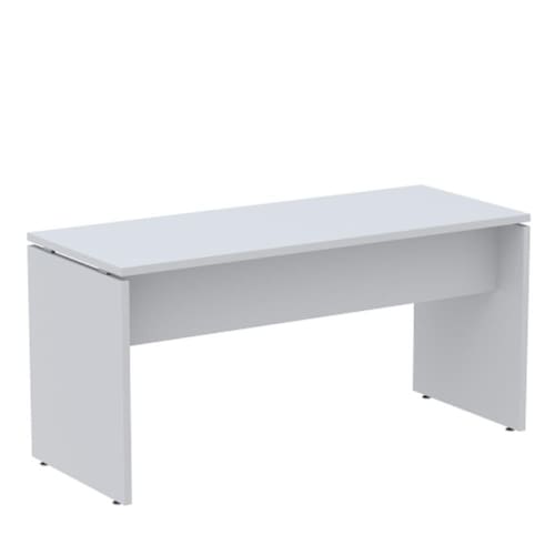 Mesa auxiliar retangular confeccionada em madeira (MDP) com pés em painel inteiriço. Seus pés possuem regulagem para ajustar em caso de desnível do piso. O tampo encabeçado tem 40mm de espessura com borda de 1mm, e o pé painel é feito em MDP 25mm com borda de 0,45mm. As retaguardas são confeccionadas em MDP 15mm, e a mesa conta com ponteiras octogonais reguláveis.