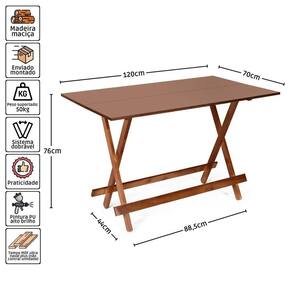 A mesa 1,20 x 70 dobrável é um produto fabricado em madeira maciça (eucalipto) sendo que apenas o tampo da mesa e o apoio de pés é em Chapa MDF ultra naval plus trazendo com si resistência, durabilidade, ótima qualidade e bom preço