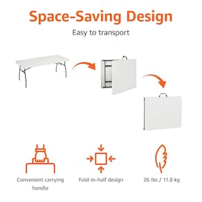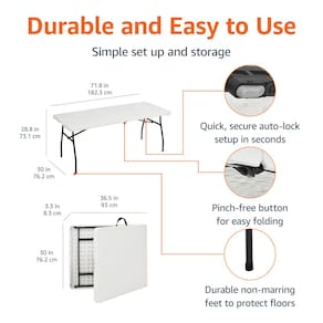 - Mesa dobrável de 1,8 m em branco; ideal para uma festa interna ou externa, evento ou espaço de trabalho extra