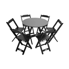 Mesa Dobrável De Madeira Redonda 90cm Com 6 Cadeiras Preta - Tarimatã