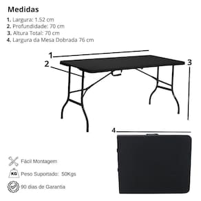 Descrições Técnicas da Mesa Dobrável Portátil Vira Maleta 1 52m: