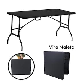 Mesa Dobrável Portátil Que Vira Maleta Para Camping Praia Leve Plástico 152cm Preta