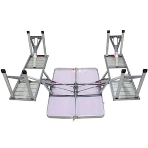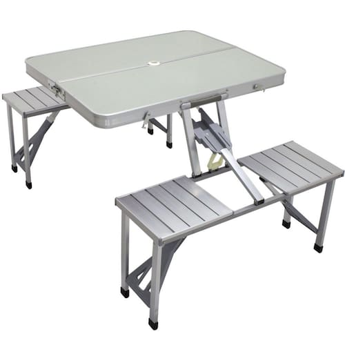 Mesa Dobrável Em Alumínio Tipo Maleta 4 bancos - Prata