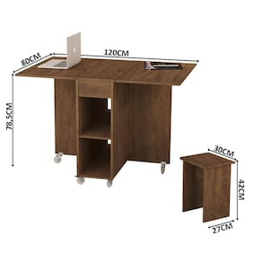 Dimensões da mesa aberta:Largura 1,20 m; Profundidade 80 cm; Altura 78,5 cm.