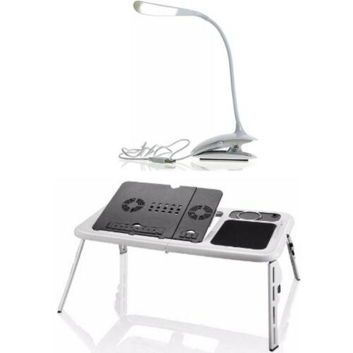 Mesa Dobrável Notebook USB Luminária Garra Table Lamp Mesa Dobrável Notebook USB 2 Cooler Mousepad Folding Table Com a mesa para Notebook E Table Cooler você terá muito mais conforto na hora de trabalhar. Além de respeitar o seu corpo, ela protege o seu equipamento, pois o mesmo fica apoiado em uma superfície com dois ventiladores. Este modelo pode ser utilizado tanto em cima de uma mesa de trabalho, como na cama, no sofá e até mesmo no aeroporto. Especificações: Com seu design prático e exclusivo você pode levar junto com seu Notebook para onde quiser, basta dobrá la e colocá la na sua maleta ou mochila. Uma novidade que vai te proporcionar mais comodidade e praticidade em seu dia a dia. Tem Regulagens de altura e inclinação. Possui 02 Coolers. Possui local para utilizar mouse externo. Porta Copos e Porta Caneta . Feito em Plástico ABS Extra Resistente. Possui 02 Coolers, evitando o super aquecimento do computador. Ajustes de inclinação e altura, local para colocar copo e outro para as canetas. Simples, é só dobrar e levar na mochila ou case. Dimensões: Altura: 2 cm Largura: 32 cm Comprimento: 56 cm Contém porta copos e porta canetas Dimensões do produto aberto: 56 x 36 x 31 cm Dimensões do produto dobrado: 28,5 x 31,5 x 3,6 cm Cor: Branca e Cinza Peso: 1,5 Kg Luminária De Mesa Com Garra Luz Led Escritório Leitura Usb Branca Ótimo para uma leitura focada em lugares de difícil apoio. Garra bem firme e rígida, podendo prega-la em qualquer lugar com muita firmeza. Contém luzes led de alta intensidade, proporcionando uma ótima iluminação. Luminária totalmente flexível, podendo girar, dobrar a vontade. Para manter a luminária acessa, basta recarregar a bateria interna ou deixar conectada via cabo. Comprimento total: 45cm Cúpula: 14cm Base: 11cm Abertura da garra: 6cm Fio via Usb: 50cm Fonte de Luz: Led Smd Material: Plástico Abs Luminosidade Ajustável por toque: 03 estágios 90 Lumens Temperatura de operação: 10C 45C Modelo: Flexível/Articulável Articulação: 360 Graus Cor: Branca Peso: 0,370 kg Itens Inclusos: 01 Mesa para Notebook Dobrável 01 Manual em Inglês 02 Cabos USB para a ligação do Cooler 01 Luminária de Mesa Garra Cabo Usb