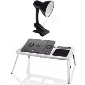 Mesa Dobrável Notebook USB Luminária Garra Table Lamp Mesa Dobrável Notebook USB 2 Cooler Mousepad Folding Table Com a mesa para Notebook E Table Cooler você terá muito mais conforto na hora de trabalhar. Além de respeitar o seu corpo, ela protege o seu equipamento, pois o mesmo fica apoiado em uma superfície com dois ventiladores. Este modelo pode ser utilizado tanto em cima de uma mesa de trabalho, como na cama, no sofá e até mesmo no aeroporto. Especificações: Com seu design prático e exclusivo você pode levar junto com seu Notebook para onde quiser, basta dobrá la e colocá la na sua maleta ou mochila. Uma novidade que vai te proporcionar mais comodidade e praticidade em seu dia a dia. Tem Regulagens de altura e inclinação. Possui 02 Coolers. Possui local para utilizar mouse externo. Porta Copos e Porta Caneta . Feito em Plástico ABS Extra Resistente. Possui 02 Coolers, evitando o super aquecimento do computador. Ajustes de inclinação e altura, local para colocar copo e outro para as canetas. Simples, é só dobrar e levar na mochila ou case. Dimensões: Altura: 2 cm Largura: 32 cm Comprimento: 56 cm Contém porta copos e porta canetas Dimensões do produto aberto: 56 x 36 x 31 cm Dimensões do produto dobrado: 28,5 x 31,5 x 3,6 cm Cor: Branca e Cinza Peso: 1,5 Kg Abajur Luminária Mesa Garra Flexível Articulável Clamp Lamp Excelente para mesas de escritório, ideal para leituras ou digitação em lugares com pouca luminosidade, além de ser um ótimo presente. Bucal com entrada E27 e aceita qualquer tipo de lâmpada de até 40 watts Estude com mais qualidade e presenteie alguém especial com a luminária, será a melhor escolha. Produto: Luminária de mesa com presilha e interruptor. Cabo: 75 cm Material da Luminária: Metal Rígido Presilha: 5,5 cm Medida: 27 cm Fonte: Tomada padrão europeu, de dois pinos Bucal: E27 padrão Obs: Não acompanha lâmpada. Cor: Preta Itens Inclusos: 01 Mesa para Notebook Dobrável 01 Manual em Inglês 02 Cabos USB para a ligação do Cooler 01 Luminária de Mesa de Garra