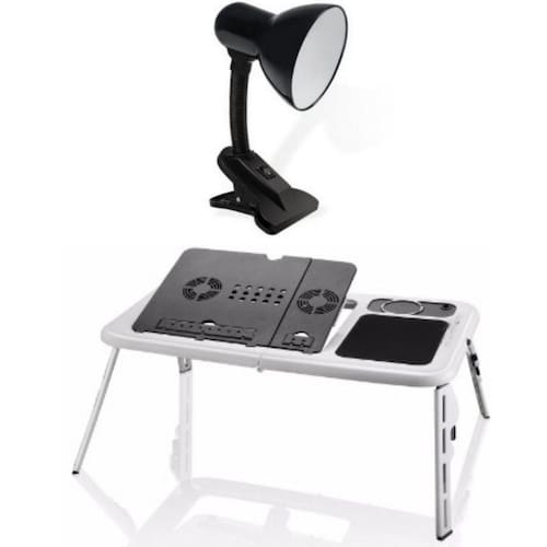 Mesa Dobrável Notebook USB Luminária Garra Table Lamp Mesa Dobrável Notebook USB 2 Cooler Mousepad Folding Table Com a mesa para Notebook E Table Cooler você terá muito mais conforto na hora de trabalhar. Além de respeitar o seu corpo, ela protege o seu equipamento, pois o mesmo fica apoiado em uma superfície com dois ventiladores. Este modelo pode ser utilizado tanto em cima de uma mesa de trabalho, como na cama, no sofá e até mesmo no aeroporto. Especificações: Com seu design prático e exclusivo você pode levar junto com seu Notebook para onde quiser, basta dobrá la e colocá la na sua maleta ou mochila. Uma novidade que vai te proporcionar mais comodidade e praticidade em seu dia a dia. Tem Regulagens de altura e inclinação. Possui 02 Coolers. Possui local para utilizar mouse externo. Porta Copos e Porta Caneta . Feito em Plástico ABS Extra Resistente. Possui 02 Coolers, evitando o super aquecimento do computador. Ajustes de inclinação e altura, local para colocar copo e outro para as canetas. Simples, é só dobrar e levar na mochila ou case. Dimensões: Altura: 2 cm Largura: 32 cm Comprimento: 56 cm Contém porta copos e porta canetas Dimensões do produto aberto: 56 x 36 x 31 cm Dimensões do produto dobrado: 28,5 x 31,5 x 3,6 cm Cor: Branca e Cinza Peso: 1,5 Kg Abajur Luminária Mesa Garra Flexível Articulável Clamp Lamp Excelente para mesas de escritório, ideal para leituras ou digitação em lugares com pouca luminosidade, além de ser um ótimo presente. Bucal com entrada E27 e aceita qualquer tipo de lâmpada de até 40 watts Estude com mais qualidade e presenteie alguém especial com a luminária, será a melhor escolha. Produto: Luminária de mesa com presilha e . Cabo: 75 cm Material da Luminária: Metal Rígido Presilha: 5,5 cm Medida: 27 cm Fonte: Tomada padrão europeu, de dois pinos Bucal: E27 padrão Obs: Não acompanha lâmpada. Cor: Preta Itens Inclusos: 01 Mesa para Notebook Dobrável 01 Manual em Inglês 02 Cabos USB para a ligação do Cooler 01 Luminária de Mesa de Garra Homologação Anatel: 001161303111 Ean: 7424211851696 Marca: Não Informado