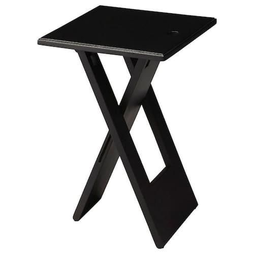 Madeira maciçaExtraordinário, versátil e divertido! Esta mesa dobrável foi projetada para se aconchegar em um pequeno local para uma breve visita? ou uma longa estadia. Dobra-se facilmente para armazenamento compacto. Feito a partir de sólidos de madeira de manga. Acabamento em preto profundo. Cuidados com o produto: Limpe com um pano seco. Aviso 1: A foto pode diferir ligeiramente do item real em termos de cor/acabamento devido à iluminação durante a sessão de fotos ou à exibição do monitor. Aviso 2: A madeira, como todos os materiais naturais, tem disparidades inerentes na cor e no padrão de granulação. Variações na tonalidade e nas marcações são normais e podem ser esperadas com os materiais naturais utilizados na construção deste produto. AVISO: Este produto pode expô-lo a produtos químicos, incluindo formaldeído, que são conhecidos no estado da Califórnia por causar câncer, defeitos congênitos ou outros danos reprodutivos. Para obter mais informações, acesse www.p65warnings.ca.gov/Furniture. Produto químico Prop 65: formaldeído.