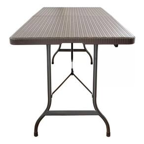 Profundidade 105 cm Dobrável Sim Cor da Estrutura Marrom Altura da Mesa 76 cm Número De Peças 1 peça Formato Retangular Marca Klimber Uso Geral Cor Marrom Medidas do Produto (AxLxC) (AxLxP) 76x92x105 cm Peso Líquido 12,200 kg Material Plástico e metal. Garantia 3 meses Características Com estampa rattan. Origem Importado"