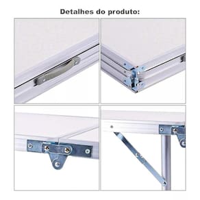 Com dimensões de 120x60cm e altura de 70cm, esta mesa retangular oferece amplo espaço para suas necessidades. É feita de alumínio e MDF, garantindo durabilidade e resistência. Além disso, é dobrável e se transforma em uma maleta, facilitando o transporte e armazenamento. A cor branca dá um toque de elegância e simplicidade. Requer montagem, mas não se preocupe, é um processo simples e rápido. Ideal para quem busca praticidade e funcionalidade em suas aventuras ao ar livre. Medidas da maleta: Peso - 2kg Largura - 64cm Altura - 67 cm Profundidade - 8cm Medidas do produto montado: Consta nas imagens