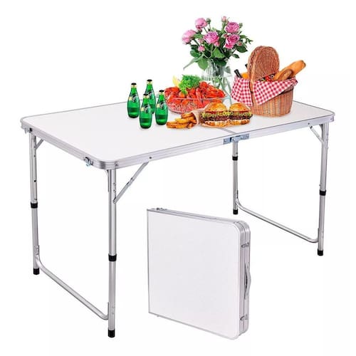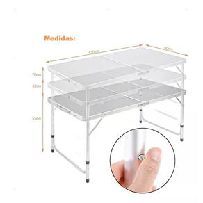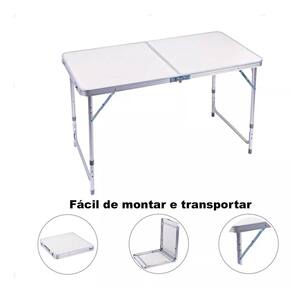 Com dimensões de 120x60cm e altura de 70cm, esta mesa retangular oferece amplo espaço para suas necessidades. É feita de alumínio e MDF, garantindo durabilidade e resistência. Além disso, é dobrável e se transforma em uma maleta, facilitando o transporte e armazenamento. A cor branca dá um toque de elegância e simplicidade. Requer montagem, mas não se preocupe, é um processo simples e rápido. Ideal para quem busca praticidade e funcionalidade em suas aventuras ao ar livre. Medidas da maleta: Peso - 2kg Largura - 64cm Altura - 67 cm Profundidade - 8cm Medidas do produto montado: Consta nas imagens Marca: Não Informado