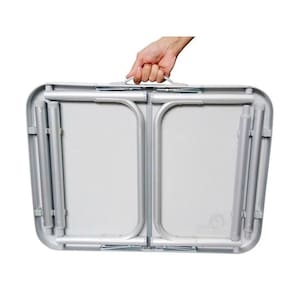 - Mesa Com Pernas Dobráveis Aluminio 60 X 45cm Vira Maleta - Alca para transporte - A mesa maleta e ideal para praia, campo, piquenique. - Seus material e de alta qualidade, tornando-a super pratica e firme. - Compacta, voce pode transporta-la para qualquer lugar sem nenhum esforco, pois alem de possuir alca para carregar, ela e super leve. - Conta com pernas ajustaveis para se adequar a sua necessidade.
