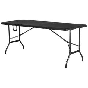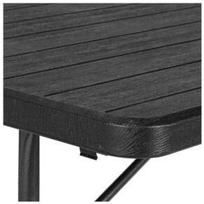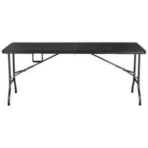 Mesa dobrável tipo maleta estampa madeira 180cm preto klimber Marca: klimber : 3 meses Cor: preto Material: plástico e metal. Características: com estampa madeira. Origem: Peso líquido: 12,200 kg Uso: geral Formato: retangular Profundidade: 105 cm Número de peças: 1 peça Dobrável: sim Altura da mesa: 76 cm Marca: Jhc