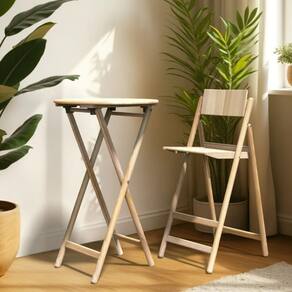 Mesa Dobrável Redonda Alta Tramontina Bossa 60x96 cm em Madeira Tauari Natural - Bege