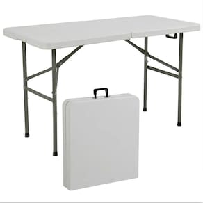 Material: Plástico ABS e metal Cor: branca Transforma-se em maleta que pode ser facilmente transportada Leve Resistente Fácil de montar e desmontar Ideal para: Camping Refeições a céu aberto Estudos Desenhos Jogos de cartas e tabuleiro Dimensões: Mesa aberta: 122 x 61 x 74 cm (L x C x A) Mala fechada: 61 x 61 x8 cm (L x A x C) Altura da mesa até o chão: 74 cm Tampo da Mesa: 122 x 61 (L x C) Suporta até 120 kg Peso: 9,88Kg