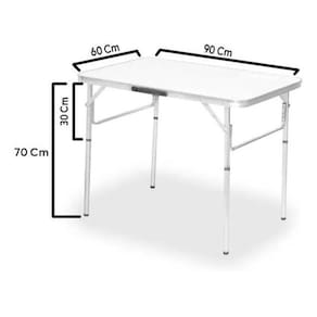Mesa Com Pernas Dobráveis Aluminio Alca para transporte A mesa maleta e ideal para praia, campo, piquenique. Seus material e de alta qualidade, tornando-a super pratica e firme. Compacta, voce pode transporta-la para qualquer lugar sem nenhum esforco, pois alem de possuir alca para carregar, ela e super leve. Conta com pernas ajustaveis para se adequar a sua necessidade. Especificações: Dimensoes tampo: 60 x 69cm Peso: 2,1KG Garantia: 3 Meses
