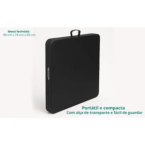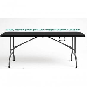 Solução prática, resistente e versátil para uso em ambientes externos e internos. Ideal para acampamentos, churrascos, eventos, feiras ou até mesmo como mesa auxiliar em casa, ela oferece uma estrutura robusta e grande área de apoio, sem abrir mão da facilidade de transporte e armazenamento. Produzida com tampo em polietileno de alta densidade, a mesa é durável, fácil de limpar e resistente a impactos. Sua estrutura metálica reforçada com pés antiderrapantes garante firmeza em diferentes tipos de terreno. O design dobrável permite que seja facilmente fechada e armazenada, ocupando pouco espaço e facilitando o transporte para qualquer lugar.