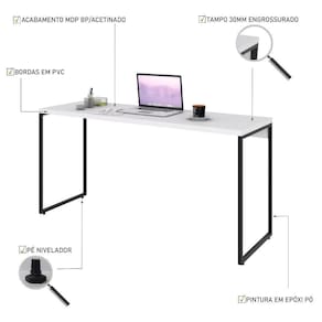 Sobre o ProdutoMesa Dynamica 150X50X75cm Branco Chess / Est.PretaDescrição do Produto:A Mesa Dynamica DYME5150 é um produto prático e versátil, que pode ser utilizado em diversos ambientes, como quarto e escritório, na sala, cozinha ou seu depó Linha Dynamica reúne design minimalista e praticidade, traços retos e móveis versáteis são as características dessa coleção. As estruturas metálicas possuem pintura Epóxi e sapatas niveladoras e, nos tampos, MDP BP Acetinado com fitas de borda em PVC. Itens Inclusos:1 MesaDimensões dos Produtos:Mesa Dynamica 150X60X75cm Branco Chess / 150 x 50 x 75 cmInformações Logísticas (Comp. X Prof. X Alt.) 155 x 54 x 7 cm - Peso: 15,088 KgPeso Total: 15,088 KgObservações:Não acompanha acessórios decorativos. Imagens meramente ilustrativas.Informações Técnicas / Características:- Cor do Produto: Branco Chess / - Marca: Compace- Modelo: DYME5150- Linha: Dynamica- Material: Mdp- Material da Estrutura / Pés: Aço- Acabamento: BP Acetinado- Escala de Brilho: Fosco- Fita de Borda: Pvc - Possui Gavetas: Não - Possui Pés: 2- Pés Niveladores: Sim - Acabamento Estrutura: Epóxi-Pó Texturizado- Formato: Retangular - Suporta Até (kg): 30 kg- Comprimento: 150cm- Profundidade: 50cm- Altura: 75cm - Peso Lí.: 14,19Kg- Recomendações de Uso, Manutenção e Limpeza: Para a limpeza, utilize flanela seca ou pano macio levemente umedecido em água. Utilize um pano seco em seguida. Evite com produtos químicos (solventes, thinner, acetona, etc) e não utilize nenhum tipo de esponja de aço.- Necessita de Montagem: Sim / Acompanha Manual de Montagem- Complexidade da Montagem: Média: pode ser montado por mais de uma pessoa e/ou necessite de maior conhecimento para montagem.- Garantia: 6 meses