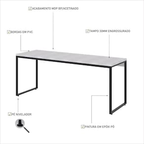 Mesa Dynamica Diretor 180x60x75cm Branco Chess / Branco Chess / Sobre o ProdutoMesa Dynamica Diretor 180X60X75cm Branco Chess / Est.PretaDescrição do Produto:A Mesa Diretor DYME6180 é um produto prático e versátil, que pode ser utilizado em diversos ambientes, como quarto e escritório, na sala, cozinha ou seu depó Linha Dynamica reúne design minimalista e praticidade, traços retos e móveis versáteis são as características dessa coleção. As estruturas metálicas possuem pintura Epóxi e sapatas niveladoras e, nos tampos, MDP BP Acetinado com fitas de borda em PVC. Itens Inclusos:1 MesaDimensões dos Produtos:Mesa Dynamica Diretor 180X60X75cm Branco Chess / 180 x 60 x 75 cmInformações Logísticas (Comp. X Prof. X Alt.) 183 x 63 x 9 cm - Peso: 20,1 KgPeso Total: 20,1 KgObservações:Não acompanha acessórios decorativos. Imagens meramente ilustrativas.Informações Técnicas / Características:- Cor do Produto: Branco Chess / - Marca: Compace- Modelo: DYME6180- Linha: Dynamica- Material: Mdp- Material da Estrutura / Pés: Aço- Acabamento: Perffect Acetinado- Escala de Brilho: Fosco- Fita de Borda: Pvc - Possui Gavetas: Não - Possui Pés: 2- Pés Niveladores: Sim - Acabamento Estrutura: Epóxi-Pó Texturizado- Formato: Retangular - Suporta Até (kg): 40 kg- Comprimento: 180cm- Profundidade: 60cm- Altura: 75cm - Peso Lí.: 19Kg- Recomendações de Uso, Manutenção e Limpeza: Para a limpeza, utilize flanela seca ou pano macio levemente umedecido em água. Utilize um pano seco em seguida. Evite com produtos químicos (solventes, thinner, acetona, etc) e não utilize nenhum tipo de esponja de aço.- Necessita de Montagem: Sim / Acompanha Manual de Montagem- Complexidade da Montagem: Média: pode ser montado por mais de uma pessoa e/ou necessite de maior conhecimento para montagem.- Garantia: 6 meses Material: Mdp | Acabamento: Perffect Acetinado | Escala de Brilho: Fosco | Fita de Borda: Pvc | Material da Estrutura: Aço | Acabamento da Estrutura: Epóxi-Pó Texturizado | Profundidade: 60 cm | Altura: 75 cm | Comprimento: 180 cm | Quantidade de caixas de embalagem: 1 | Produto: Mesa | Cômodo indicado: Escritórios | Cor: Multicolorido | Tonalidade: Multicolorido | Coleção: Industrial | Requer Baterias: Não | Certificação Externa: Não aplicável | Componentes inclusos: | É frágil: Sim | Preço de tabela: | Fabricante: Compace | do Modelo: DYME6180 | de Caixas: 1 | de Itens: 1 | da Peça: DYME6180 | Baterias são necessárias?: false | Palavras-chave de Pesquisa: Não Aplicável | Quantidade de itens: 1 | Principais Características do Produto 0: Escritório | Principais Características do Produto 2: Estrutura de aço | Exige montagem: true | Acabamento do móvel: BP Acetinado | Peso do item: value=19;unit=kilograms | Dimensões do item P x L x A: width#value=180;depth#unit=centimeters;height#value=75;height#unit=centimeters;depth#value=60;width#unit=centimeters | Produto personalizado: | Base da Mesa: | Duração da Garantia: | Dimensões do Produto (A x L x C), sem a caixa de embalagem: | Desing da Escrivaninha: | Recursos da Escrivaninha: | Montagem: | Marca: | Móvel Dobrável: | País de Origem: | Coleção de Antiguidade: | Tipo de Mesa: | Recursos da Mesa: | Tipo de Garantia: | Código Anvisa do Produto: | Motivo de Isenção Anvisa: | Data de validade Anvisa: | Formato da Escrivaninha: | Shape: | Tamanho Do Pacote: | de Assentos: | Temas de Estampas: | Formato do Espelho: | Nr. do Lote do Produto: | Altura da Mesa: | Funcionalidades: | Estilo: | Qtd. de Produto no Lote: | Quantidade: Cor: Branco Chess /