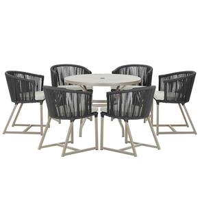 Mesa e 6 Cadeiras De Jantar Noronha Fendi E3 Trama autêntico Preto