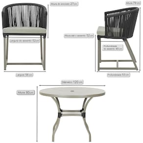Fotos meramente ilustrativas. Tonalidades podem variar dependendo do monitor. Os objetos que ambientam as Fotos nao acompanham o produto. Antes de comprar o seu produto verifique as medidas, o onde pretende instalar e se necessario contratar o servico de um qualificado. Produto conhecido como: mesa e cadeiras, Jogo de jantar, Estofado impermeavel, Moveis de exterior, Cadeira resistente a agua, Cadeira estofada, Cadeira para area externa, Cadeira de jardim, Moveis para varanda, Cadeira duravel, Cadeira de alta qualidade, Conforto em Cadeira, Cadeira elegante.