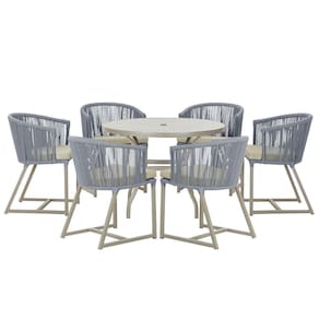Mesa e 6 Cadeiras De Jantar Noronha Fendi E7 Trama autêntico Prata - Blush