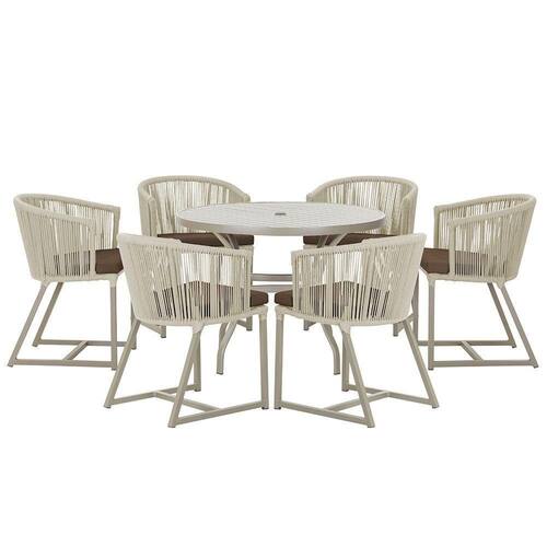 Combinando estilo e resistencia, esta Mesa e cadeiras traz o melhor do design contemporaneo em aluminio com micro pintura e acabamento em corda nautica. O Estofado impermeavel completa o conforto e a funcionalidade, tornando-a ideal para ambientes externos e internos.