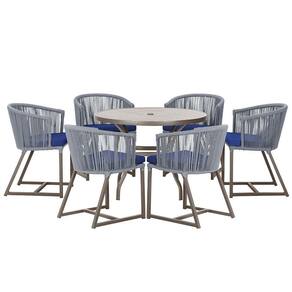 Combinando estilo e resistencia, esta Mesa e cadeiras traz o melhor do design contemporaneo em aluminio com micro pintura e acabamento em corda nautica. O Estofado impermeavel completa o conforto e a funcionalidade, tornando-a ideal para ambientes externos e internos.