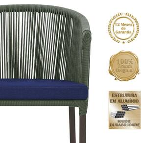 Combinando estilo e resistencia, esta Mesa e cadeiras traz o melhor do design contemporaneo em aluminio com micro pintura e acabamento em corda nautica. O Estofado impermeavel completa o conforto e a funcionalidade, tornando-a ideal para ambientes externos e internos.