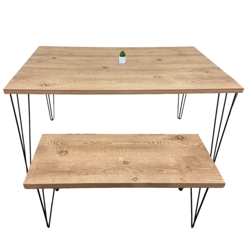 Transforme o ambiente da sua casa com estilo e sofisticação ao adquirir a nossa deslumbrante mesa de jantar retangular de 1,40x90 cm com banco de 1,00x40 cm. Essa peça incrível combina elegância e funcionalidade, sendo perfeita para elevar o visual do seu espaço!