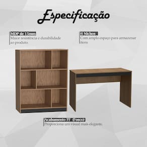 Mesa e Estante Gamer Para Escritório B28, é a opção perfeita para quem busca estilo e funcionalidade. Estrutura produzida em MDP de 15mm, oferecendo solidez e resistência a peça. Contando com acabamento FF (Fosco), garantindo durabilidade e estilo ao produto. Mesa possui tampo grande e espaçoso, ideal para acomodar seu computador e uma variedade de objetos com conforto e praticidade. Estante composta por 6 Nichos, oferecendo amplo espaço para organizar seus livros, pastas e materiais de trabalho. Suportando até 20kg o tampo e 5kg cada nicho. Ideal para criar seu espaço de jogos, home office ou escritório. Estes móveis chegarão na sua casa separados em 2 volumes.