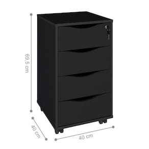 O Gaveteiro é feito em MDP, possui quatro gavetas com corrediças metálicas, facilitando a organização de celulares, livros e cadernos, contando com chave para a primeira gaveta, trazendo e privacidade.