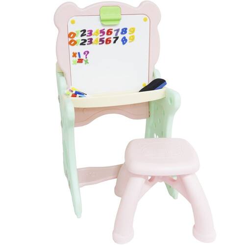 Mesa e Lousa Mágica Pintura Infantil Didática 2x1 Dobrável Plástico Cadeira Brinqway Bw-076 - Cor: Rosa