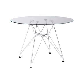 MESA EAMES FERRO BRANCO TAMPO REDONDO VIDRO 90CM