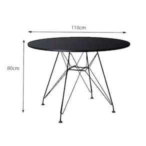 Mesa Eames Ferro Preto Tampo Redondo Madeira Preto 110cm