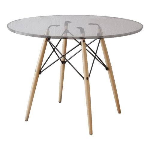 Mesa Eiffel De Jantar Vidro 90cm Base Madeira - Cor: Marrom