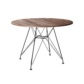 Mesa Eiffel Redonda 110cm Tampo De Madeira Amendôa Com Base De Ferro Preto A Mesa Eiffel é a escolha ideal para deixar sua casa muito mais bonita e renovada. Essa mesa tem em sua estrutura materiais de altíssima qualidade, que proporciona muito mais resistência, mesmo com o passar dos anos. Ela tem formato redondo e possui espaço para 4 lugares, o que é ideal para um jantar em família. A mesa é versátil e combina com vários tipos de decoração, o que dá mais praticidade em casa.