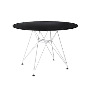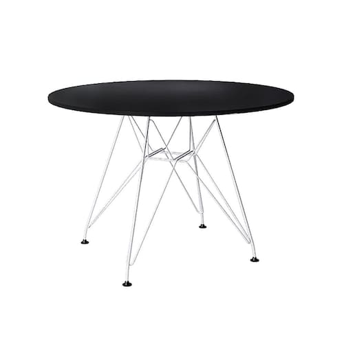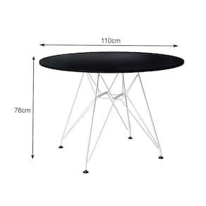 Mesa Eiffel Redonda 110cm Tampo De Madeira Preto Com Base De Ferro Branco A Mesa Eiffel é a escolha ideal para deixar sua casa muito mais bonita e renovada. Essa mesa tem em sua estrutura materiais de altíssima qualidade, que proporciona muito mais resistência, mesmo com o passar dos anos. Ela tem formato redondo e possui espaço para 4 lugares, o que é ideal para um jantar em família. A mesa é versátil e combina com vários tipos de decoração, o que dá mais praticidade em casa.
