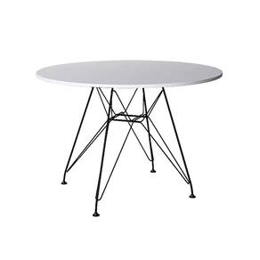 Mesa Eiffel Redonda 90Cm Tampo De Madeira Branco Com Base De Ferro Preto - Cor: Branco