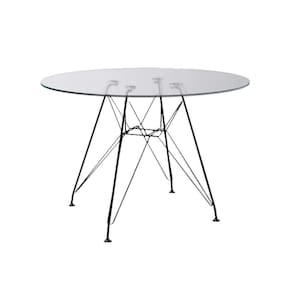 Mesa Eiffel Redonda 90Cm Tampo De Vidro Com Base De Ferro Preto - Cor: Preto